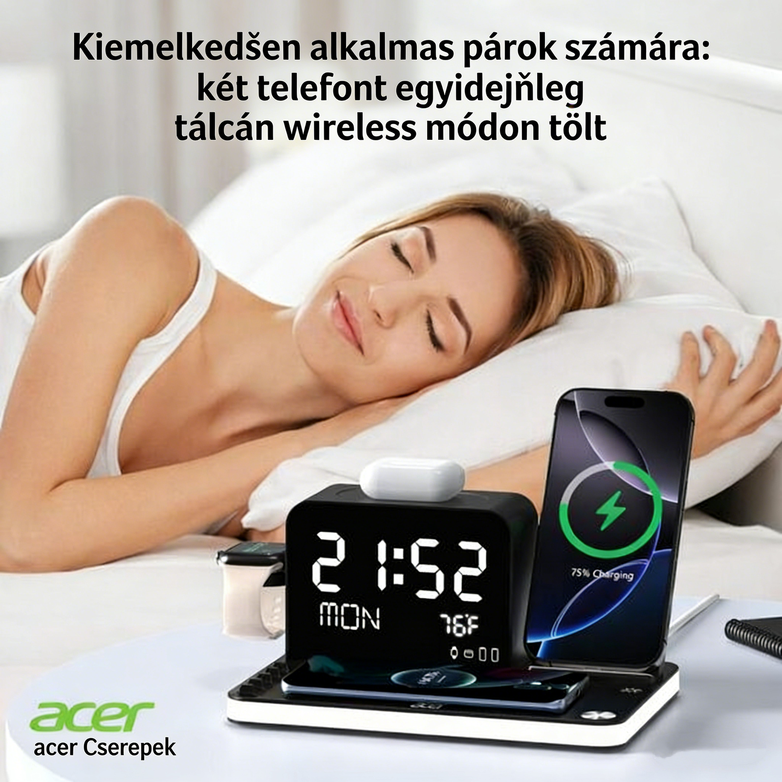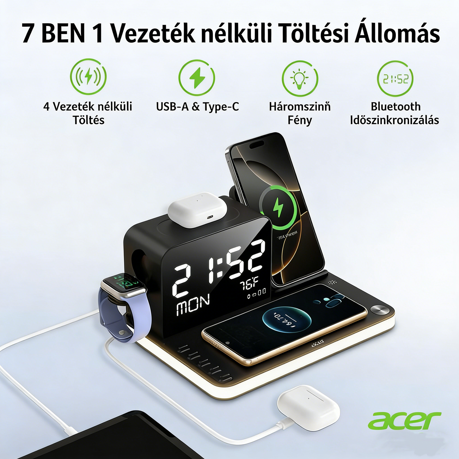 30 reviews for Acer 7-in-1 vezeték nélküli töltőállomás, MagSafe dupla telefon töltő éjjeli lámpával, Bluetooth időszinkronizációval az iPhone 17/16/15/14/13/12 sorozathoz, az AirPods-hoz, az iWatch-hoz és az Android telefonokhoz, fekete USB elektronikus okostelefon vezeték nélküli óra töltő – Dealsforyoudays